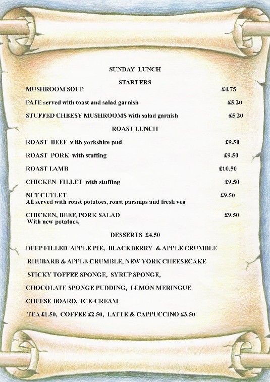 Menu's - The New Inn Viney Hill, Holiday Let Forest of Dean Gloucestershire. Moutain Bike accommodation, Cyclists Ramblers. Places to stay in the Forest of Dean.